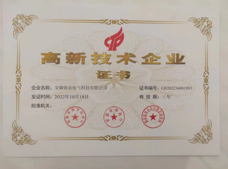 全国高新技术企业认定管理工作领导小组办公室公布了2022年度高新技术企业综合绩效评价结果。包括链众电气科技股份有限公司在内的共4893家企业通过了项目验收,被评为国家级高新技术企业。