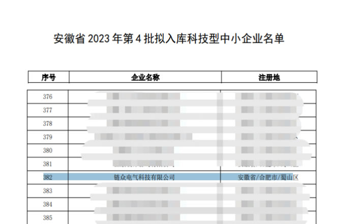 安徽省科学技术厅根据《科技型中小企业评价办法》(国科发政(2017) 115号)和《科技型中小企业评价服务工作指引》(国科火字(2022)67号)要求公布了安徽省2023年第4批拟入库科技型中小企业,包括链众电气科技股份有限公司在内的共3663家企业通过了项目验收,被评为国家级科技型中小企业